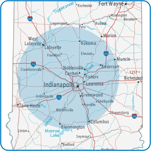 We’re based right here in Indiana, and our team covers communities from Lafayette to Columbus, Muncie to Martinsville, and everywhere in between. If you live in Central Indiana, chances are we’re already serving your neighbors!