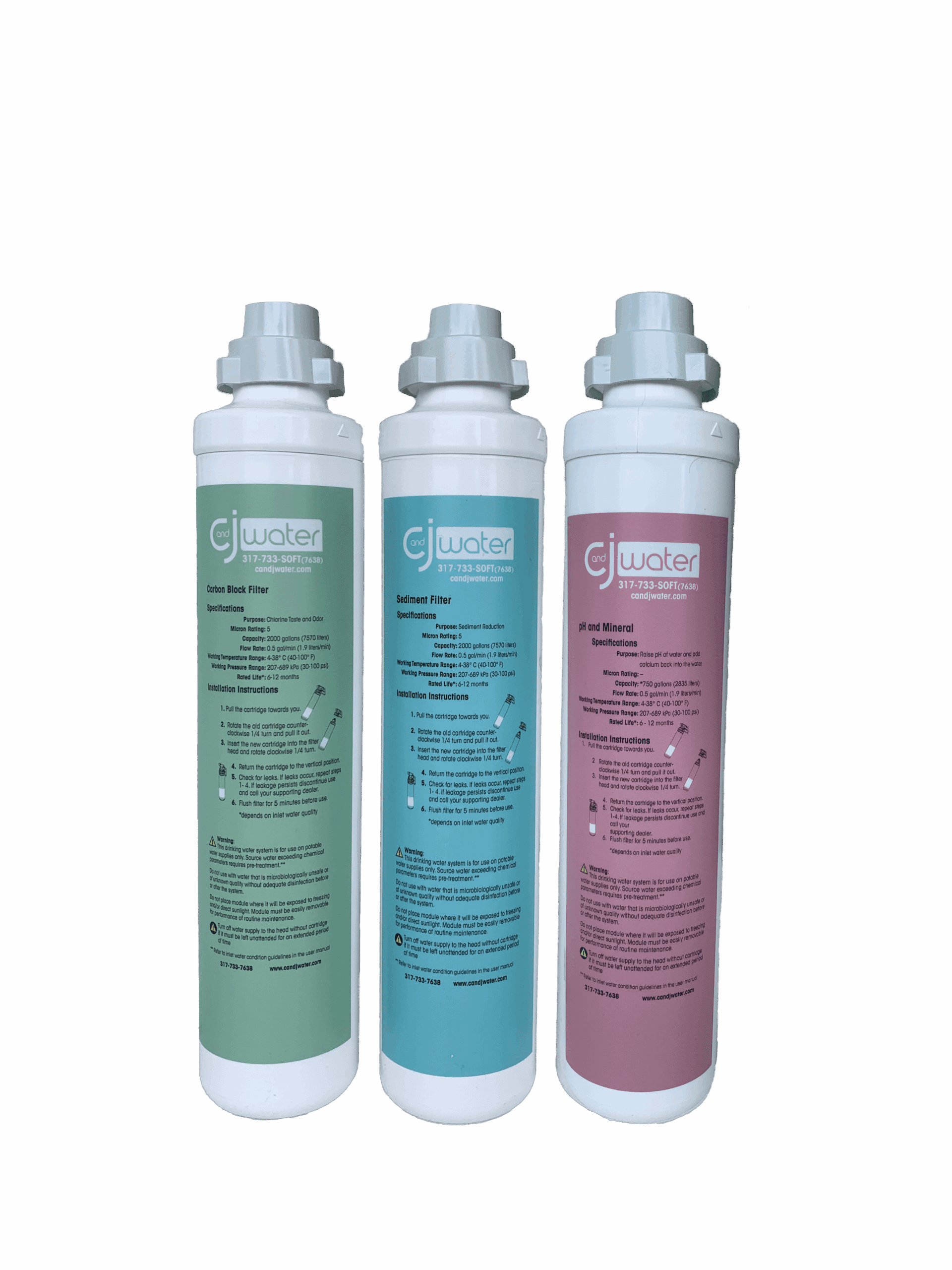 Kit Contents: One (1) Deluxe Sediment Filter, One (1) Deluxe Carbon Block Filters, One (1) Deluxe pH & Mineral Filter